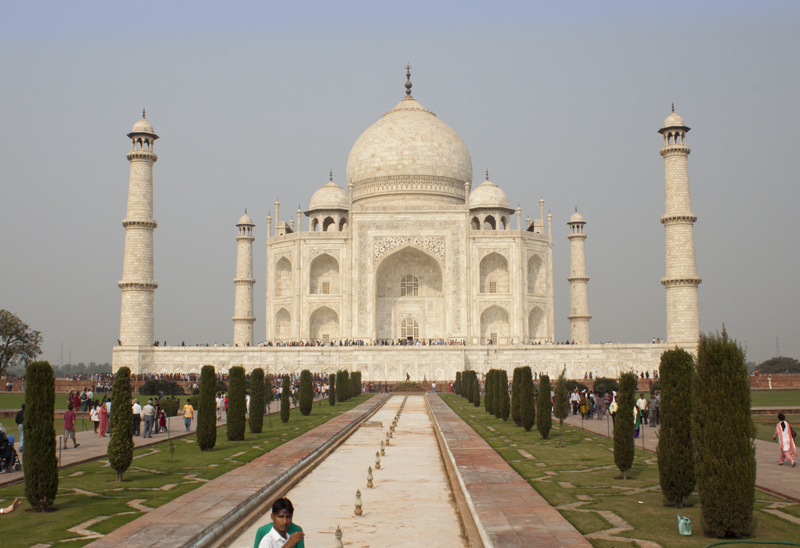 We decided to get a driver for the day in Agra. At first there was no guide in the car, after I insisted there be one all of a sudden we had a new driver and a guide for the same price. We started at Fatehpur Sikri as the sky was filled with smog and smoke and we wouldn't have good views of the Taj. The heavy cloud cover keeps all the pollution trapped overnight and it doesn't start to dissipate until the sun burns away the cloud cover. We had a nice guide who explained the old city and then we went to the Taj. It's pretty awesome. There were a ton of people and we made two laps around it just to get into various lines. But it was really beautiful. This was my second time visiting Agra. The first time was misery because of the heat and humidity. The second time was much, much better and I was able to enjoy the day. I actually had to borrow my friend's hoodie!